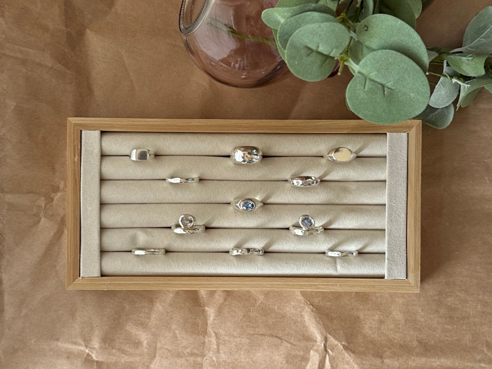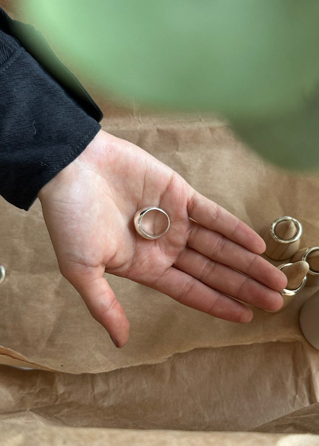 Each ring is made by sand-casting, expect small, delightful variations in texture.