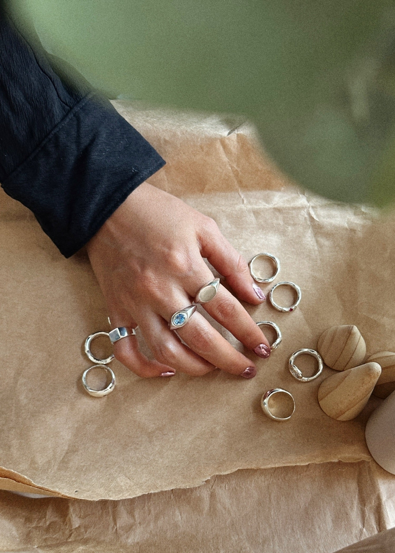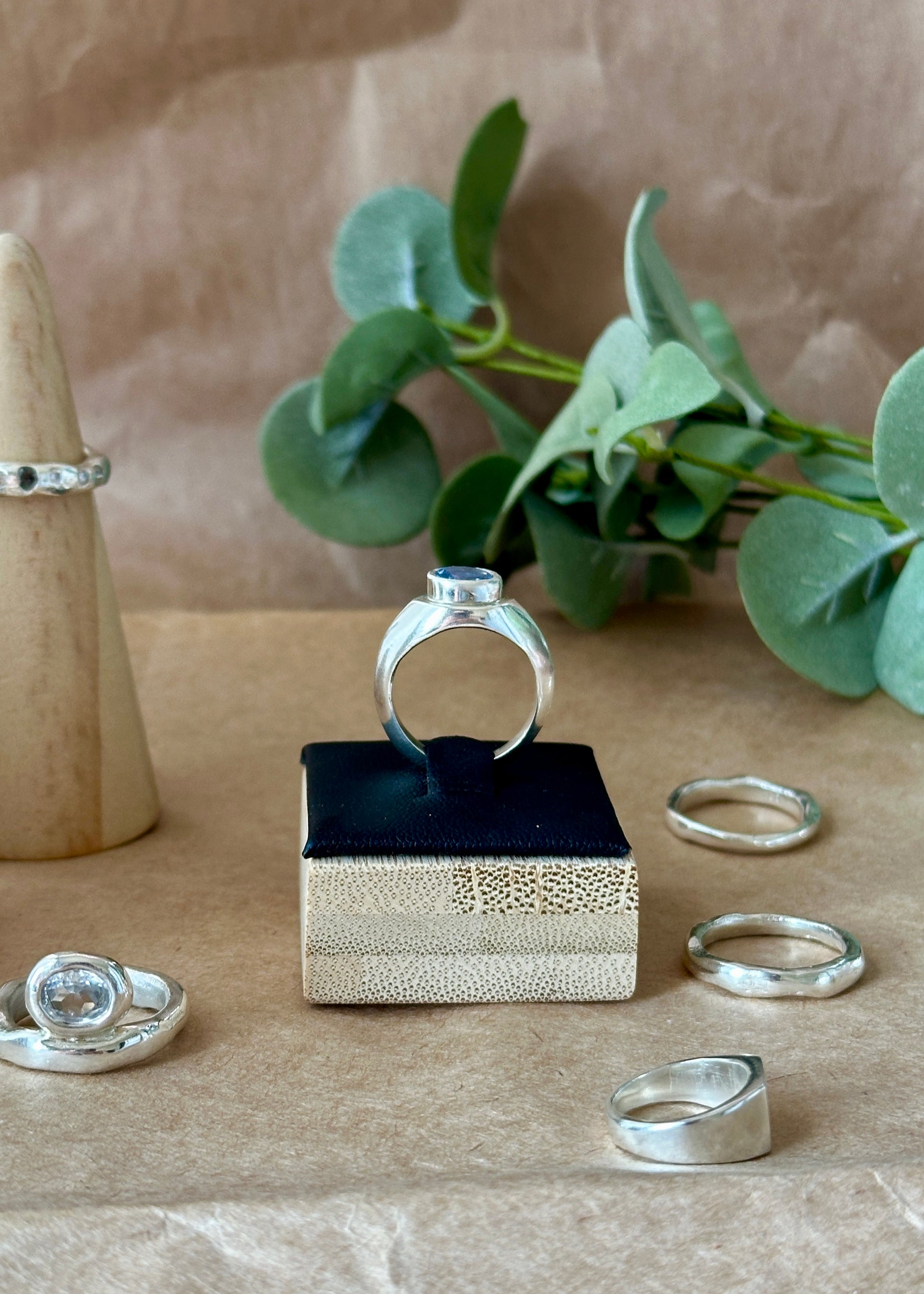 Each ring is made by sand-casting, expect small, delightful variations in texture.