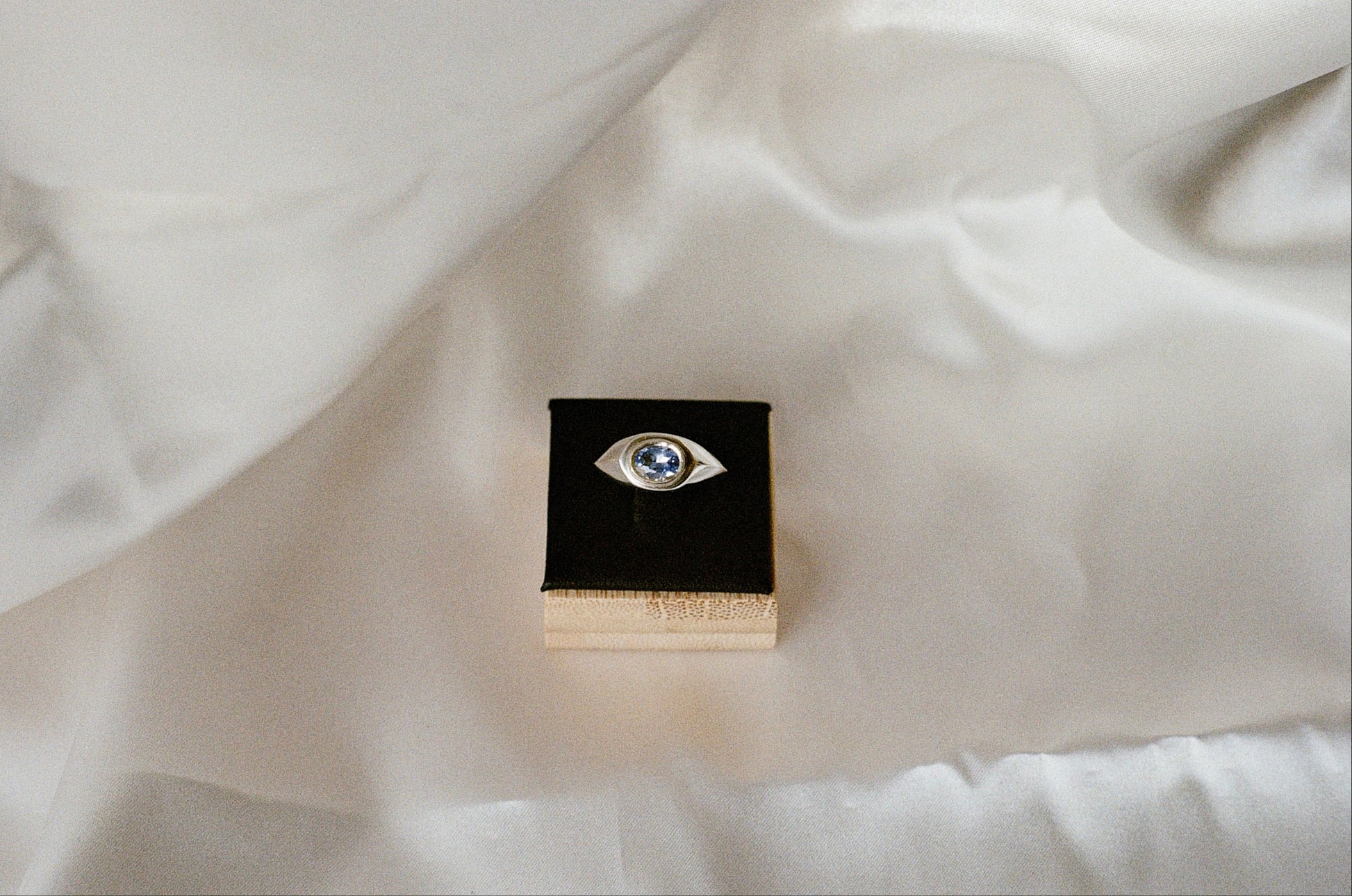 This oval signet is carved in wax, cast in solid sterling, and finished with a subtle knife-edge band that catches light at every turn. Your chosen stone is bezel-set directly into the face - held close, secure, and quietly luminous.